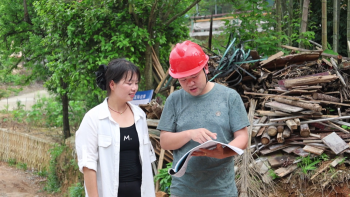 乡村建设工匠刘捷与李红梅沟通房屋建设事宜(易建军 供图)