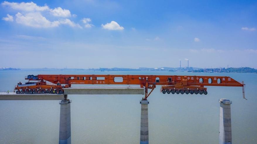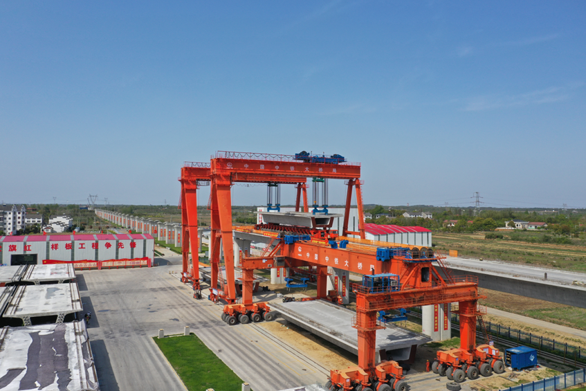 中铁大桥局研发的高速铁路标准梁运输架设一体化设备。